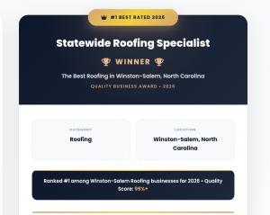 HIGH POINT, NC, UNITED STATES, March 30, 2026 /EINPresswire.com/ -- Statewide Roofing Specialist has been recognized as the Best Roofing Companies in Winston-Salem, North Carolina. The Piedmont Triad’s leading roofing contractor, which positions itself as a GAF Master Elite, has received the Quality Business Award 2026 for its quality service, customer satisfaction, and industry excellence in the region.